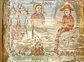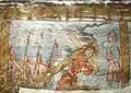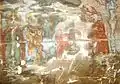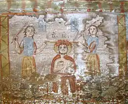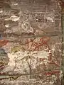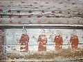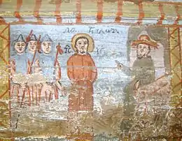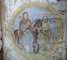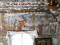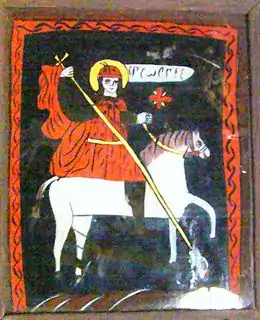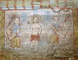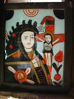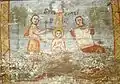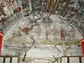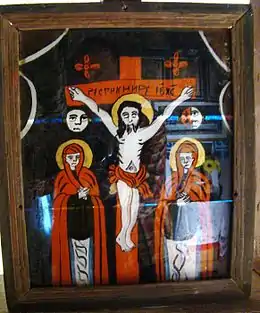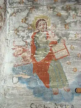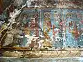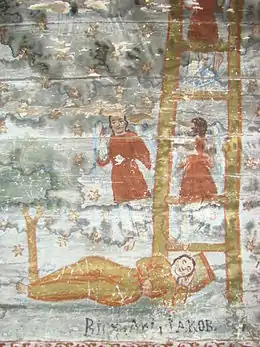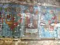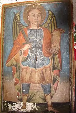 Pictura, realizată în manieră naivă de un anumit pictor Adalbert, în 1843, în timpul păstoririi preotului Cosma Vasile și al episcopului Ioan Lemeni, se mai păstrează prin câteva scene compoziționale cum sunt: Visul și Scara lui Iacov, Nașterea lui Iisus, Cei trei Crai de la Răsărit, Duminica Floriilor, Patimile cu Flagelarea, Urcușul Golgotei și Răstignirea. Spațiile libere sunt umplute cu steluțe roșii în șase colțuri și Îngeri sunând din trâmbițe.