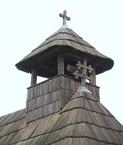 Acoperișul bisericii are învelitoare de șindrilă. La interior, nava este acoperită de o boltă semicilindrică, iar altarul de un semicilindru intersectat de trei fâșii curbe. Deasupra pronaosului boltirea a fost înlocuită prin tavan drept, pentru a face loc clopotniței, de mici dimensiuni, care a fost adăugată mai târziu[4].