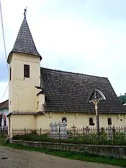 Biserica este clădită din lemn cu temelia din piatră, în stil vernacular țărănesc specific în Ardeal. Biserica a fost renovată pe la 1897, când a fost refăcut și turnul-clopotniță, din piatră, pe cheltuiala și cu ajutorul direct al credincioșilor parohiei și din împrejurimi. Pictura interioară a fost executată pe pânză de sac aplicată pe lemn, de pictorul N.Mureșan. Din patrimoniul bisericii mai fac parte, ca obiecte de valoare, o cruce mică de lemn, vechiul iconostas, un serafim și un clopot returnat și o biblie veche tipărită cu litere chirilice, învelită în scoarțe de lemn.