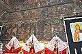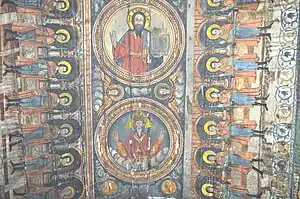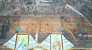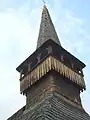 Peste pronaosul bine tăvănit se ridică stâlpii turnului, până deasupra galeriei deschise, cu arcadele ei semicirculare, de unde începe să se avânte spre cer coiful octogonal, înscris după tipic constructiv într-o bază pătrată. Acest coif a fost odinioară cu măiestrie șindrilit, ceea ce dădea o notă de distincție acestei proeminențe.