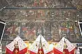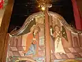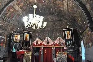 Naosul are pereții laterali în continuitate directă, cu deschiderea într-o boltă semicilindrică susținută, prin exterior, de trei arcuri semisferice de care sunt prinse bârnele[1].