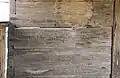 Din vremea în care biserica încă se afla pe locul ei inițial, în Hârlești, se păstrează două însemnări lungi pe peretele de la intrare. La stânga intrării, textul în română, scris cu chirilice, se poate citi astfel: „Leat 1858 I[isus] H[ristos] sau înviat”, dedesupt: „Mare ești Dumne[zeule] și m[i]nunate sănt lucrurile tale”, în continuare: „Să să știe de cănd l-am însurat pă fiiul mieu Stancu. Săminaru la ghenarie 26 și la februarie întăi la întiampinat negricioasa moarte și la 17 f[e]vr[uarie] șia dat opștescul sfiarșit și la 18 f[e]vr[uarie] sa înmormiantat. Mare plăns și jale să afla atunci”. În dreapta ușii se poate citi astfel: „Să se știe de căndu m-am [fă]cut preot 1858 mai 3, P[o]pa Gheorghe”.