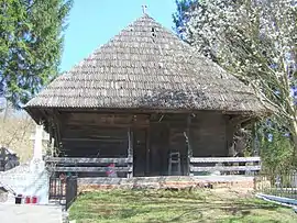 Biserica este clădită din bârne de lemn, netencuită; are formă de navă, fără turn, cu pridvor pe stâlpi, cu capete sculptate, pe latura vestică, în timp ce absida altarului este decroșată, poligonală, cu cinci laturi. Anul construcției este 1832; biserica este închisă cultului, iar starea foarte proastă a acoperișului de șindrilă duce la degradarea iremediabilă a picturii din interior.
