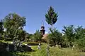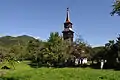 Clopotnița este înaltă și suplă, cu foișor pe două nivele.