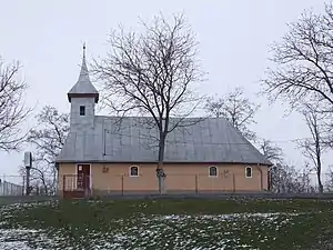 Analiza tipologică a edificiului îndreptățește afirmația că acesta ar fi mult mai vechi decât datele vehiculate, fiind probabil cel menționat în conscripțiile secolului al XVIII-lea. Planul bisericii este dreptunghiular, cu altarul nedecroșat, de formă poligonală, cu cinci laturi. Dimensiunile navei originare erau reduse: 10,35m/5,80m; ele au fost amplificate în 1866 sau 1899, spre vest, cu 2,35m, peste partea adăugată înălțându-se o clopotniță de mici dimensiuni. Interiorul este acoperit de o boltă unică, semicilindrică.