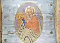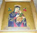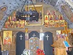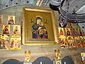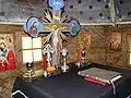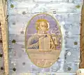 Pictura. În interior, peretele a fost zidit până la nivelul începutului bolții. Pe boltă s-a aplicat un tapet, reprezentând stele, adică Bolta cerească, și cei patru evangheliști în medalioane.