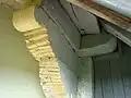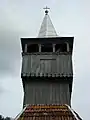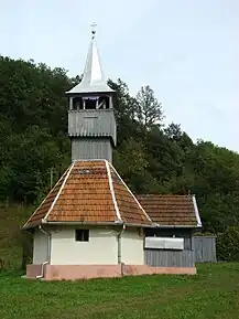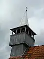 Pronaosul este suprapus de un turn-clopotniță cu foișor deschis și coif octogonal evazat, învelit în tablă; la acoperișul propriu-zis s-a folosit țiglă. În anul 1786, lăcașul a fost supus unei ample renovări, cu caracter de rectitorire. Fie cu acel prilej, fie la scurt timp după, suprafața interioară a bârnelor a fost împodobită pictural de zugravul Urean cel Tânăr; pisania fragmentară (,,... s-au zugrăvit această sfântă biserică pentru banii ce s-au aflat în biserică ceva. În anul acesta trăia Cozmă Toderilă, Cozmă, Toder, Ion, Petru, Petruțu, Blaj; și eu, zugrav Urean cel Tânăr.”)[1] și legendele reprezentărilor iconografice fac trimitere la grafia vechilor manuscrise. Decorul degradat al pereților a fost mascat, în 1899, sub un strat de tencuială improprie, regăsită și la exteriorul lăcașului; în dreptul intrării sudice și-a făcut apariția un pridvor deschis din scânduri. În anul 1930, la nivelul bolții naosului, rămasă aparentă, s-a executat, peste pictura originară, o zugrăveală decorativă; medalioanele iconografice de pe pereții aceleiași încăperi aparțin unei etape ulterioare. Ultimele reparații s-au desfășurat în anii 2007-2008.