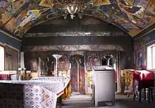 O inscripție în pridvor surprinde laconic momentul unei necesare refaceri a acoperișului: „1865 acoperită”.