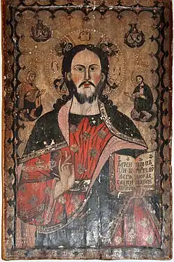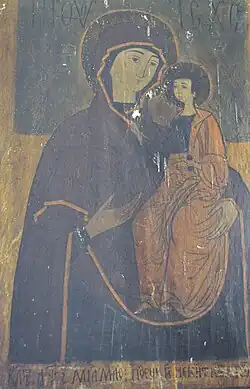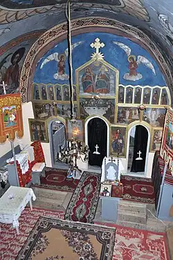 Pictura interioară actuală din 1934 se datorează lui Coriolan Munteanu, în schimb icoanele sunt cu mult mai vechi. Diversitatea stilurilor dovedește circulația mare a pictorilor în secolul al XVIII-lea. Cea mai veche dintre picturi este o reprezentare a „Hodighitria”, compoziție arhaică cu figuri alungite, tratate grafic, amintind de icoane din secolul al XVII-lea. În partea de jos a panoului se află o inscripție slavonă, care în traducere are următorul text: „Văleat 1706, luna mai. Pomenește Doamne pe Nechita, Cosma...”[2]