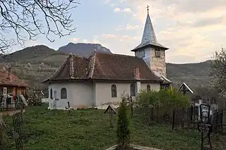 Mica localitate, situată pe dreapta Arieșului, are o istorie îndelungată, fiind pomenită întâi în documente în anul 1470. Momentul ridicării acestei biserici din lemn de zadă este datat sau antedatat de prestolul de piatră ce poartă anul 1710 incizat în chirilice.[1] Lăcașul de cult a suferit importante lucrări de renovare în 1933, când a fost tencuit în exterior, iar turnul clopotniței a fost îmbrăcat cu tablă. Biserica trebuia să fi fost o remarcabilă realizare înaintea transformărilor sale, după cum ne dovedesc frumoasele fragmente de pictură păstrate în turnul nou, ce utilizează material, din naosul vechi, ca și valorosul patrimoniu mobil.