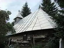 Pereții bisericii înscriu o navă dreptunghiulară, cu lungimea de 7,40 m[3]. Sub temelie s-au pus pietre, mai puține pe nord, pe 2-3 rânduri pe sud[4]. Altarul este decroșat, poligonal, cu cinci laturi[5]. Laturile de nord și de sud ale altarului au o poziție înclinată și dimensiuni mici. Se remarcă îmbinările măiestre în coadă de rândunică.