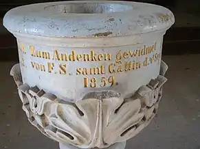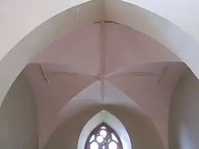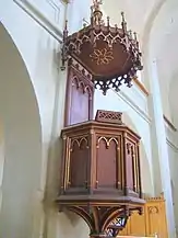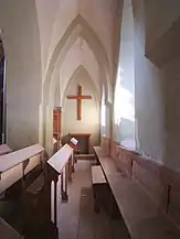 Ansamblul de mobilier de interior datează din ultimul sfert al secolului al XIX-lea, fiind, asemenea bisericii, realizat în stil neogotic. Singura piesă păstrată din biserica medievală este un sfeșnic din lemn policrom, datat 1687.