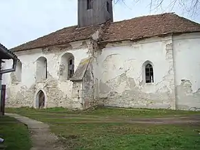 Biserica luterană a fost construită în secolele XIII-XIV, începută în stil romanic, continuată în stil gotic, cu transformări în 1633. După exodul sașilor transilvăneni, biserica a intrat în posesia parohiei ortodoxe, care însă folosește o altă biserică, construită la 1880 de greco-catolici. Fosta biserică evanghelică este lăsată în paragină: acoperișul a început să se degradeze, au putrezit grinzile, au căzut planșeele, iar biserica, valoros monument de arhitectură, este într-o stare aproape de colaps[3].