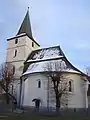 Interiorul navei este marcat de o galerie care urmărește planimetria circulară pe trei laturi, sud, vest și nord, fiind sprijinită pe pilaștrii adosați peretelui navei.