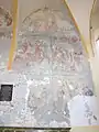Un cronicar de la 1630, preluat de istoriografia săsească, scria că în anii 1542-1543, datorită activității pastorului Nikolaus Stephani, cea mai mare parte a comunității săsești a trecut la luteranism, lăcașul de cult suferind modificările obișnuite impuse de negarea imaginilor cu sfinți. Au fost scoase altarele laterale și alte obiecte ce purtau imagini cu sfinți și au fost acoperite suprafețele de pictură murală, ce fuseseră realizate în secolele XIV-XV. Părți din pictura veche parietală au început să fie din nou vizibile, din anul 1932, pe zidul de nord al corului. În exterior, o foarte degradată imagine cu Isus și instrumentele Patimilor, iar la interior, până sub arcele bolților, o serie de scene din Ciclul Patimilor și Învierii lui Isus (alături de Punerea în Mormânt a fost însemnat și anul realizării, 1500)[3].