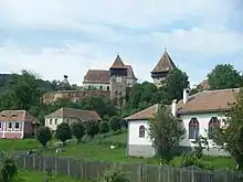 Biserica săsească se află pe panta unui deal care domină comuna și datează de la începutul secolului al XIV-lea, dar fortificația din jurul ei a fost ridicată aproape două secole mai târziu. La începutul secolului XVI, biserica de tip biserică-sală de mici dimensiuni a fost fortificată prin supraînălțarea corului cu două etaje de apărare accesibile printr-o scară mobilă, ultimul susținut pe console de piatră profilate ce deschid între ele guri de smoală.