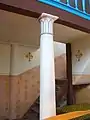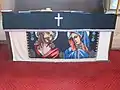 Odinioară biserica a fost înzestrată cu un altar baroc, bogat decorat cu diferite statui de sfinți și îngeri, volute, vrejuri baroce, cu triunghiul Sfintei Treimi și coloane geminate. Tabloul predelei înfățișa Cina cea de taină, iar panoul central scena Răstignirii. Pe spatele altarului se afla următoarea inscripție: „Pictum AD 1761 d. 29. Septemb. Sub Pastoratu P.D.D. Mich. Gross, Georg Hanik, Martin Mössel, aeditui”[3]. Orga de odinioară a bisericii era construită în 1874 în atelierul din Sibiu al constructorului Wilhelm Hörbiger, și a fost cumpărată în 1988 de comunitatea catolică a bisericii Sfântul Iosif din localitatea Sfântu Gheorghe.