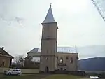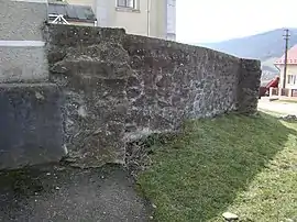 Biserica este înconjurată de un zid de incintă din piatră de grosime și înălțime variabilă și cu plan neregulat. Pe latura de nord, dinspre sat, a zidului de incintă se înalță un turn de poartă, de plan pătrat, cu trei etaje, prevăzut cu un coif acoperit cu tablă zincată.
