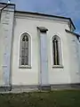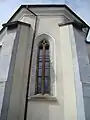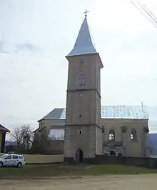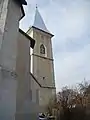 Biserica este situată la marginea de sud a satului, pe terasa unui deal. Nava dreptunghiulară este mai lată decât corul și este sprijinită de contraforturi. Corul cu închidere 5/8 este compus din două travee, ranforsate în exterior de patru contraforturi de colț. Pe latura lui nordică se află o sacristie cu plan dreptunghiular.