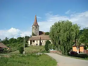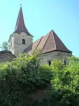 Biserica sală a fost construită în secolul al XV-lea, în stil gotic, cu cor poligonal și turn clopotniță. Atât corul, cât și sala, au fost acoperite în anul 1780 cu bolți în cruce, cu arce dublouri. Acoperișul turnului a fost refăcut în 1787.