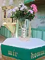 Altarul baroc a fost realizat în anul 1745, așa cum menționează inscripția incizată pe spatele său: H ROT 1745/ MR 1745. Amvonul, decorat cu patru panouri pictate reprezentându-i pe cei patru evangheliști și un panou ce poartă inscripția de donație, a fost făcut tot în anul 1745 și refăcut în 1839.