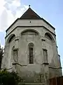Biserica a fost fortificată la începutul secolului al XV-lea: s-au zidit căile de acces de pe sudul și nordul turnului, iar ultimul nivel a fost dotat cu o galerie de lemn. Toate contraforturile au fost unite două câte două cu arcuri pentru a susține un etaj amenajat în scop defensiv, cu ambrazuri și guri de vărsare deasupra întregii nave și a absidei. Tot în această perioadă în jurul bisericii s-a delimitat o incintă de refugiu și apărare închisă cu ziduri și întărită cu turnuri.