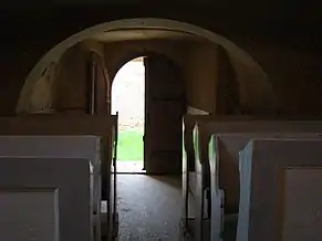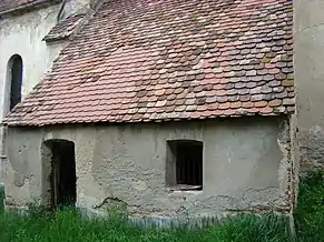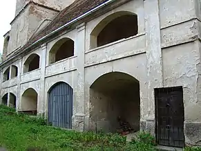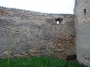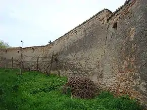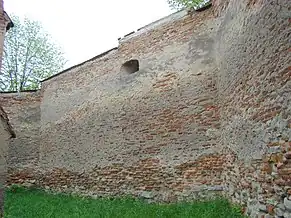 Fortificația în formă ovală, ridicată jurul anului 1500 sub forma unui singur rând de ziduri, cu înălțime variabilă, se adaptează pantei pe care se află biserica, închizând incinta.[10]