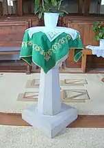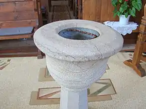 Biserica medievală data din anul 1427. Credincioșii catolici medievali au devenit toți luterani, împreună cu biserica, după Reforma protestantă. Satul a fost distrus de mai multe ori în secolul al XVII-lea, de ciumă și de tătari în 1658. În 1794, biserica veche împreună cu satul au fost distruse de un incendiu. Câțiva ani mai târziu, în 1804, a fost construită actuala biserică.