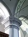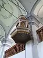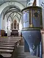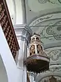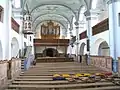 După un incendiu devastator în 1728, biserica a fost refăcută abia în 1781-1782. Galeriile s-au înălțat, iar bolta s-a construit în stil rococo. Orga datează din 1902 și altarul neogotic din 1867. Cele 3 statui de pe altar îi reprezintă pe Isus Cristos, și pe apostolii Ioan și Matei. Altarul este împodobit și cu un tablou după Leonardo da Vinci din 1868. Ceasul ce înfrumusețează turnul de 40.7m a fost construit în 1888.