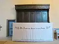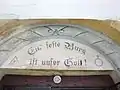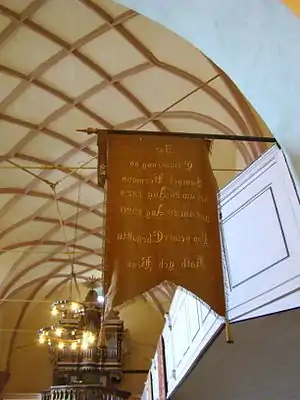 Pe unul din clopote se află inscripția "O REX GLORIAE VENI" (O, Rege al Gloriei, vino!) scrisă cu litere majuscule gotice, iar pe al doilea clopot stă scris cu minuscule gotice "in honore sancti Nicolai benedictus sit huius campagne sanus in nomine patris filii et spiritus sancti amen!..."[3]