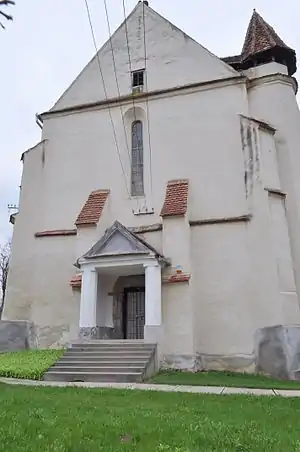 | Biserică-sală în stil gotic cu influențe baroce ulterioare | fortificată |