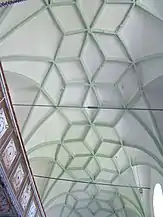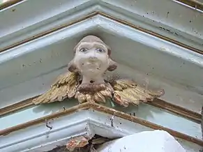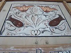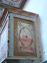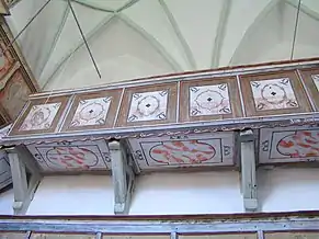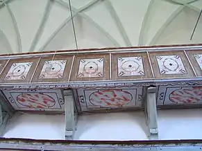 Casete de lemn pictat la parapetul tribunei