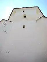 Nava bisericii are deasupra contraforților arcade caracteristice pentru scopuri defensive, în timp ce corul dispune de orificii pentru turnat smoală, situate pe două nivele. Construită în secolul XIV și fortificată la începutul secolului XVI, biserica este o bazilică de tranziție de la romanic la gotic.