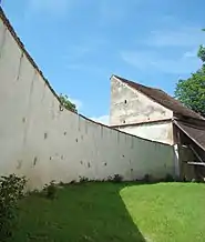 Dispune de o curtină neregulat-poligonală, la care regăsim întregul arsenal de componente de apărare, ale unei biserici fortificate: contraforturi, turnuri la toate punctele cardinale. Toate turnurile sunt pe baze pătrate, însă inegale ca dimensiuni. Cel mai important este cel de la nord-vest, în care s-a locuit odinioară, urmat, în ordine descrescătoare, de turnurile de sud, nord și est.
