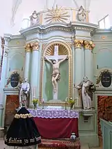 Altarul, realizat din lemn, în stil clasicist, este datat 1805. Aceeași dată este valabilă și pentru orga aflată deasupra acestuia, construită în stil rococo de Johannes Hahn junior. În anul 2007 a fost transferată la Brasov, restaurată și amplasată în Biserica Sf. Martin din Brașov[3].