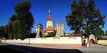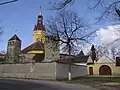Biserica este înconjurată de un zid dublu de incintă, care timp de trei secole a fost construit, extins și prevăzut cu nouă turnuri de apărare, din care s-au păstrat doar opt. Turnul de poartă a fost transformat în casă parohială.