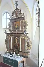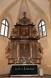 În 1493 localitatea a fost incendiată de năvălitorii turci. În perioada 1472-1498 a avut loc transformarea bazilicii romanice într-o biserică gotică cu trei nave. Nava principală are lungimea de 18,3m și lățimea de 17,5m, corul principal are lungimea de 15,5m și lățimea de 8,4m. Coama acoperișului se înalță la 28,4m, respectiv 26,3 m.