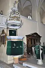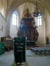 În colțul de SE al casei parohiale, orientat spre incinta secundară, se mai păstrază un amvon de ciumă, din care preotul predica în vremuri de epidemii credincioșilor adunați în aer liber.