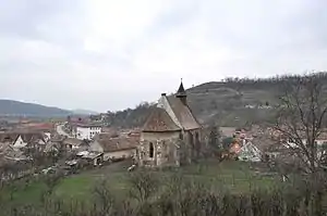 Localitatea este situată la 4 km de Mediaș, pe malul drept al râului Târnava Mare. Prima mențiune documentară este din 1317; a aparținut în Evul Mediu de comitatul Cetatea de Baltă[1].