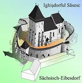 ![]() Biserica fortificată din Ighișu Nou ![]() Machetă pentru biserica fortificată din Ighişu Nou ![]() Planul fortificaţiei din Ighişu Nou[2] | |