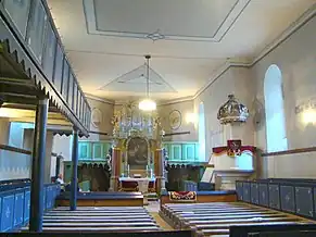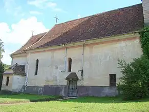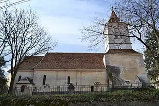 Biserica a fost construită în secolele XIV-XV și a fost înconjurată de fortificații cu înălțimea de circa 6-8 m, din care nu au mai rămas decât fragmente. În urma unui incendiu devastator, biserica și clopotnița au fost distruse, fiind refăcute în stil gotic, în 1573. Interiorul bisericii este eclectic, combinând mai multe stiluri arhitectonice: gotic, clasic, neoclasic, cu cel baroc și renascentist. Altarul de la începutul sec. XIX este în stil neoclasic și este unit cu orga. Amvonul este zidit si are baldachin din lemn în stil baroc. Potirul a fost realizat la mijlocul veacului al XVI-lea.[3]