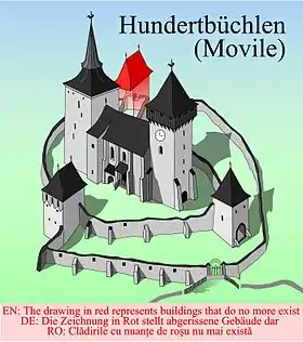 ![]() Biserica fortificată din Movile ![]() Machetă pentru biserica fortificată din Movile ![]() Planul fortificaţiei din Movile[2] | |