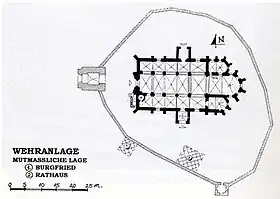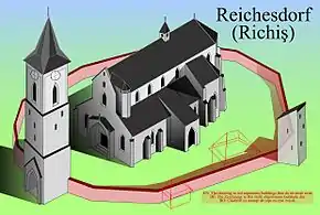![]() Biserica fortificată din Richiș ![]() Machetă - Reconstituire pentru biserica din Richiş ![]() Planul fortificației de la Richiș | |