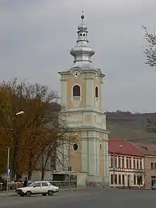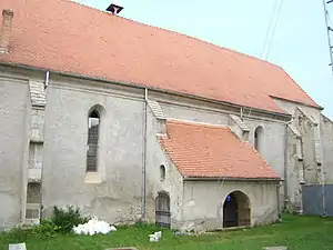 Turnul-clopotniță lateral, de factură barocă, a fost ridicat pe incintă în anul 1782. Curtina din jurul bisericii a servit protecției cimitirului, înainte ca dispozițiile administrației habsburgice din secolul al XVIII-lea să oblige scoaterea sa din perimetrul locuit.