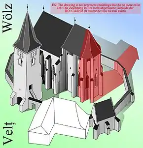 ![]() Biserica fortificată din Velț ![]() Machetă - Machetă pentru biserica din Velţ ![]() Planul fortificaţiei din Velţ | |