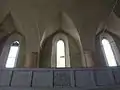 Altarul baroc a fost distrus cu ocazia prăbușirii peretelui de est al corului, în 2002. O incintă ovală înconjoară biserica. Nemaiexistând o comunitate evanghelică în localitate, corul prăbușit nu a fost reconstruit[3].[1]