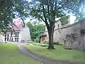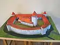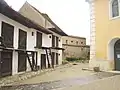 Zidul de incintă din secolele XIV-XV avea acces protejat cu hersă (grilaj din lemn întărit cu fier) și gură de aruncare. În prezent intrarea principală este mascată de clădirea primăriei. În fortificație se mai pot vedea încă cămările bine păstrate.