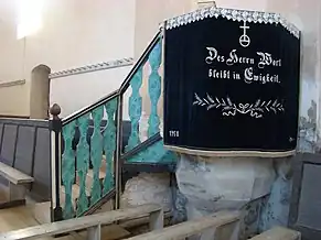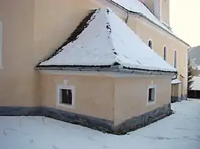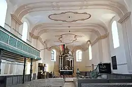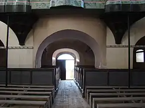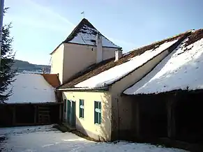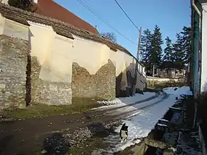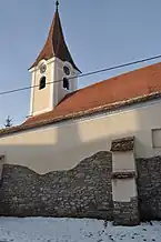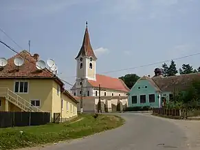 Cetatea bisericească este situată la est de strada principală, în partea centrală a satului. Biserica a fost construită între anii 1783-1784; în curtea înconjurătoare se mai află spații de depozitare deschise. Sala este simplă, sprijinită de contraforturi, având un cor cu închidere poligonală mai îngust decât lățimea sălii. Biserica este înconjurată de un zid de incintă, cu laturi aproximativ drepte, întărit la colțuri cu două turnuri[4].