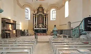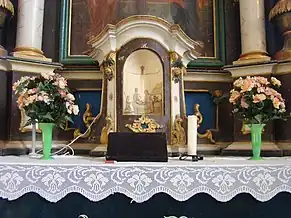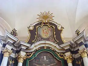 Tabloul principal al altarului este flancat de coloane corintice sub care se află un tabernacol.JPG.webp)