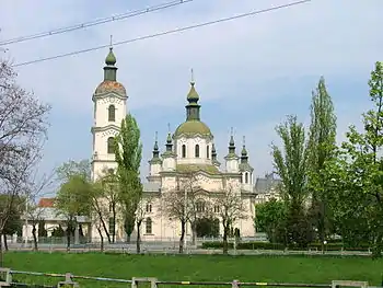 ![]() Biserica lipovenească din Iași Imagine din 2011, după zugrăvirea pereților exteriori și acoperirea turlelor bisericii cu tablă de inox bombardata cu ioni de titan | |